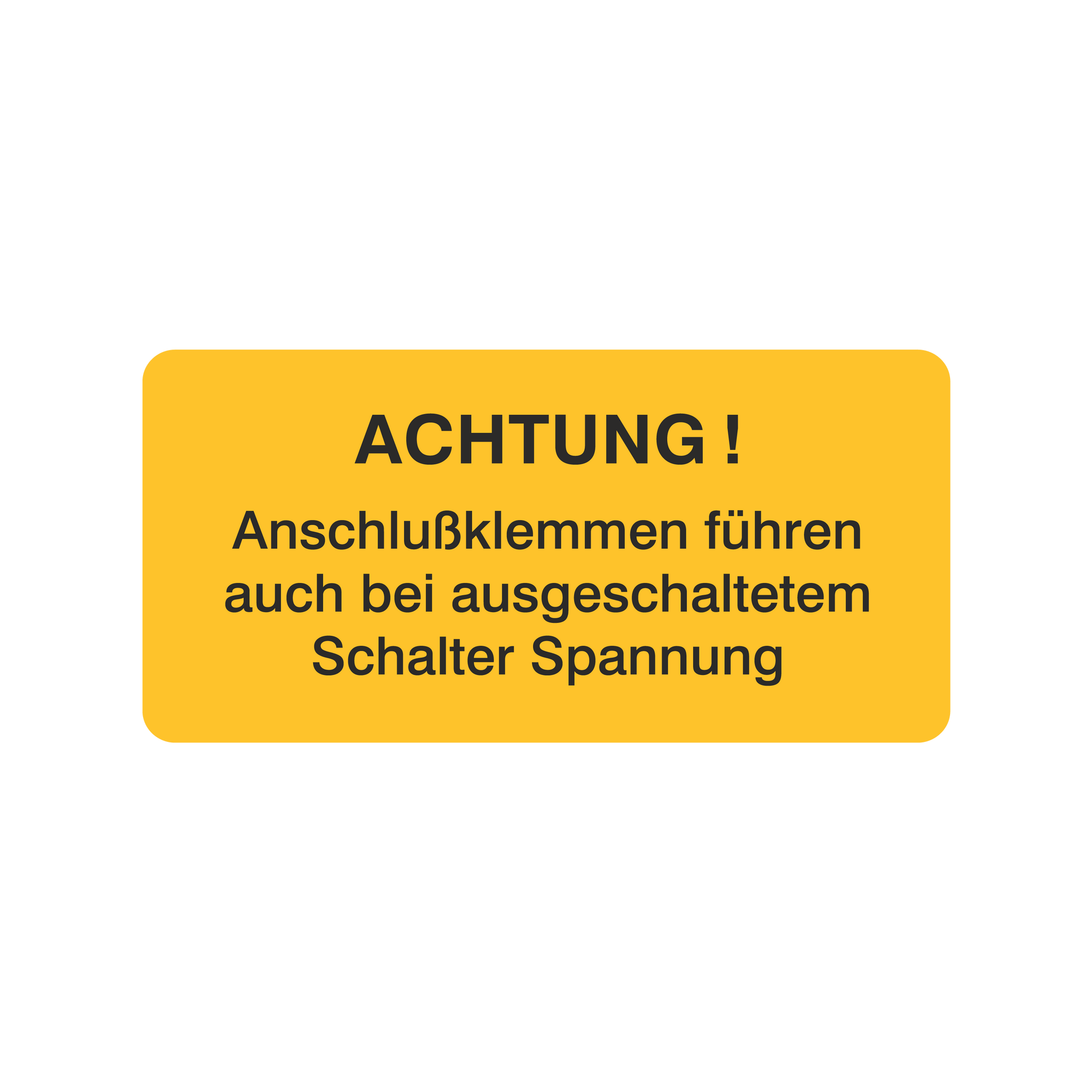 Achtung! Anschlussklemmen führen auch bei ausgeschaltetem Schalter Spannung