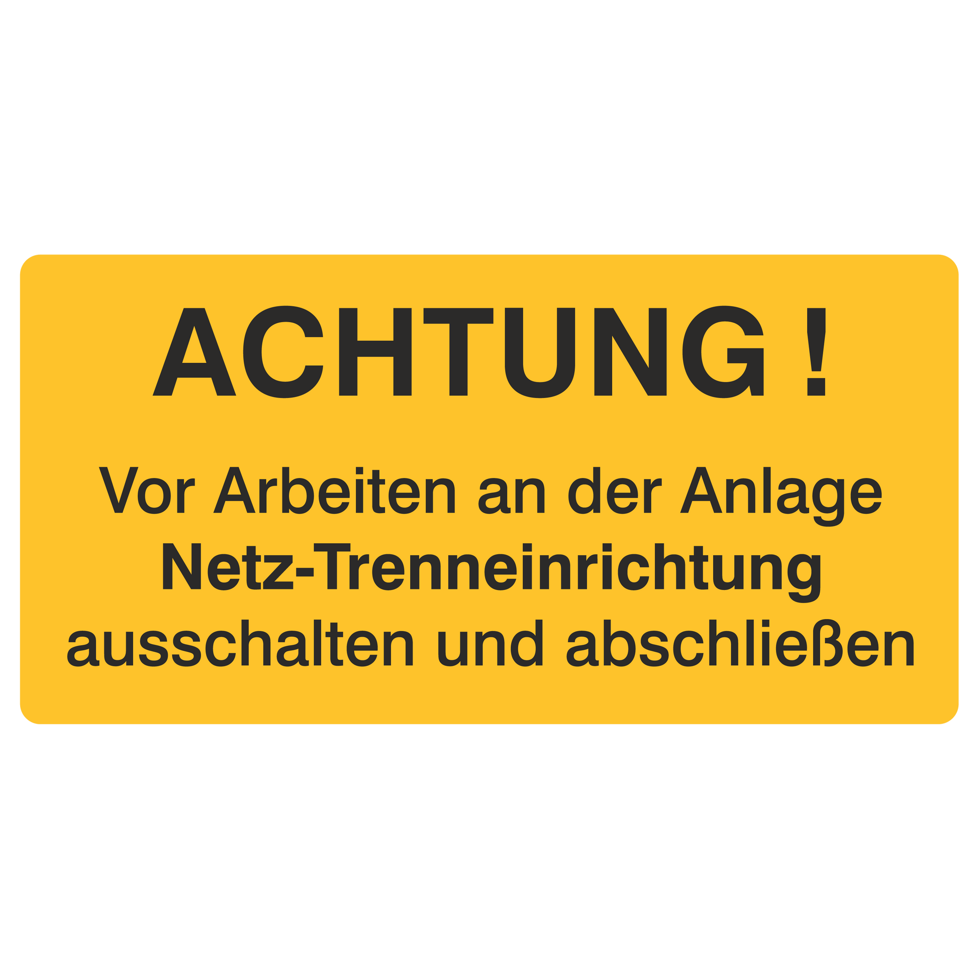 Achtung! Vor Arbeiten an der Anlage Netz-Trenneinrichtung ausschalten und abschließen