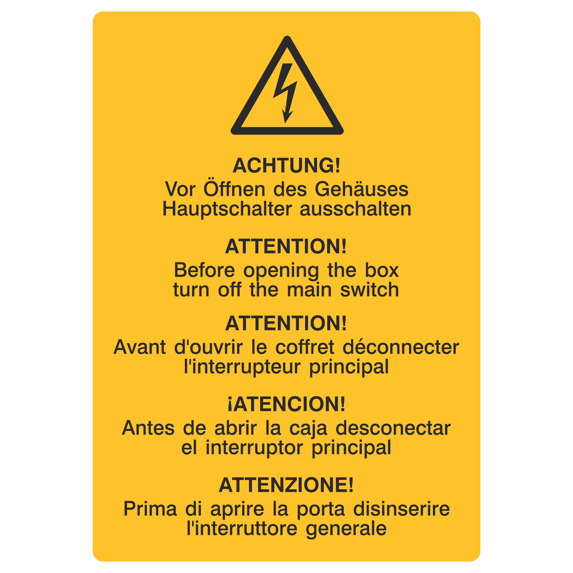 Vor Öffnen des Gehäuses Hauptschalter ausschalten