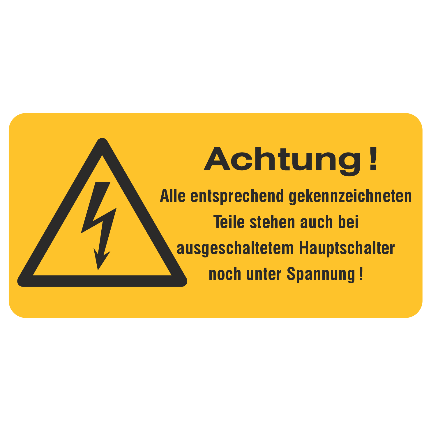 Alle entsprechend gekennzeichneten Teile stehen auch bei ausgeschaltetem Hauptschalter noch unter Spannung
