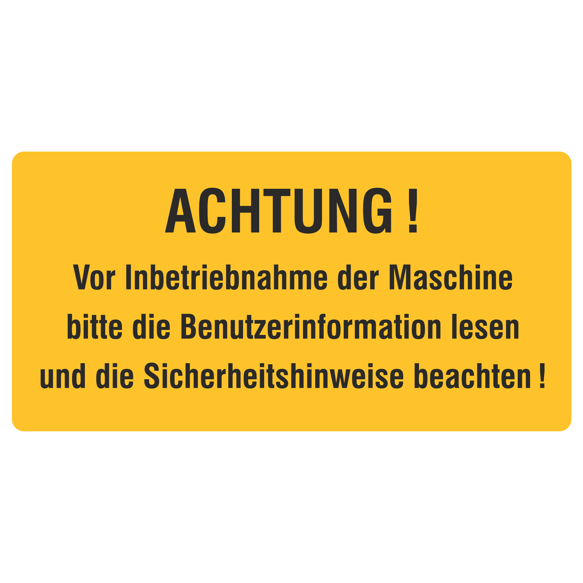 Betriebskennzeichnung / Achtung Vor Inbetriebnahme der Maschine bitte die Benutzerinformationen lesen und die Sicherheitshinweise beachten!