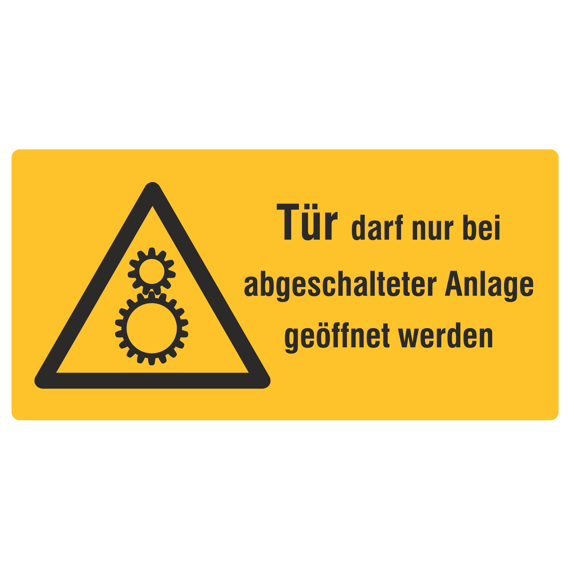 Betriebskennzeichnung / Tür darf nur bei abgeschalteter Anlage geöffnet werden