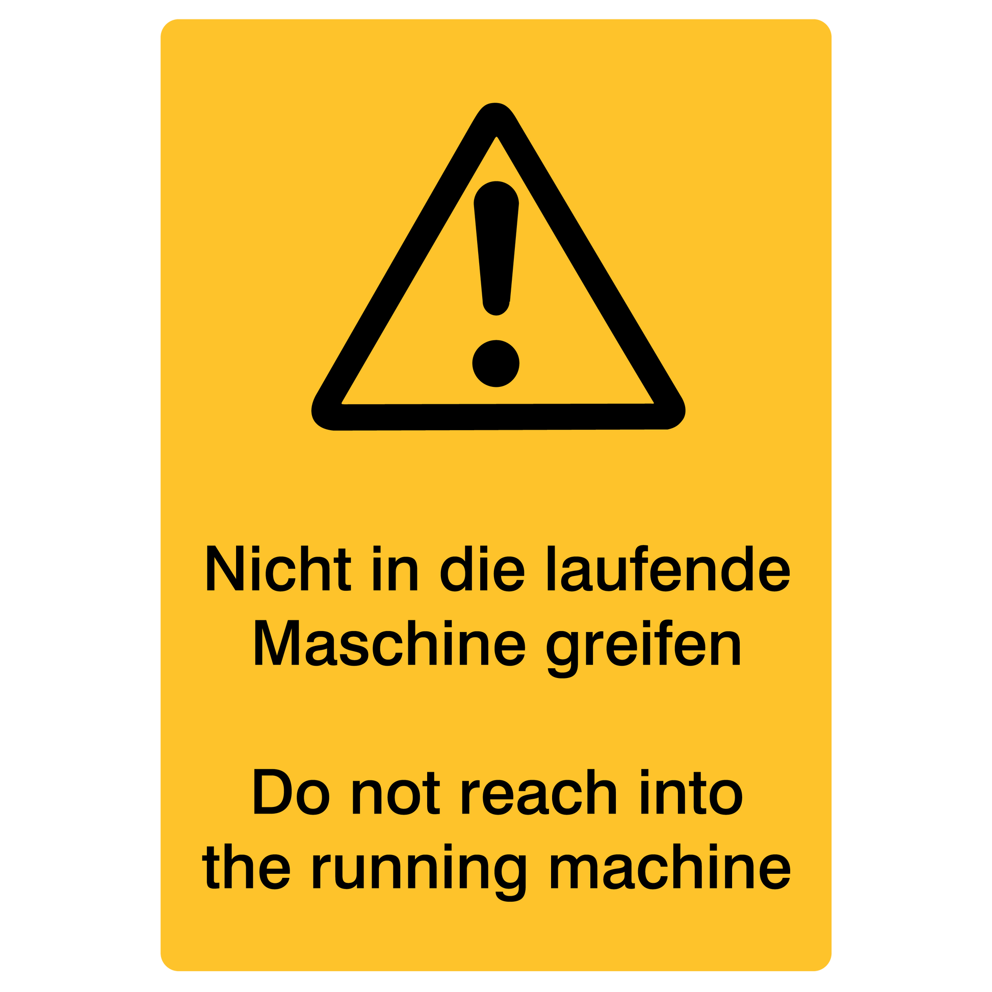 Betriebskennzeichnung / Nicht in die laufende Maschine greifen DE/ENG