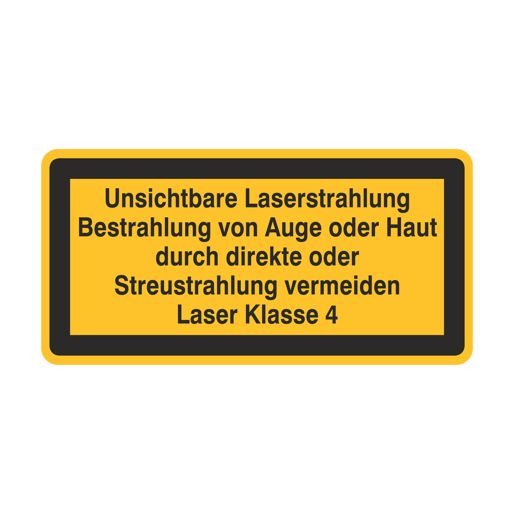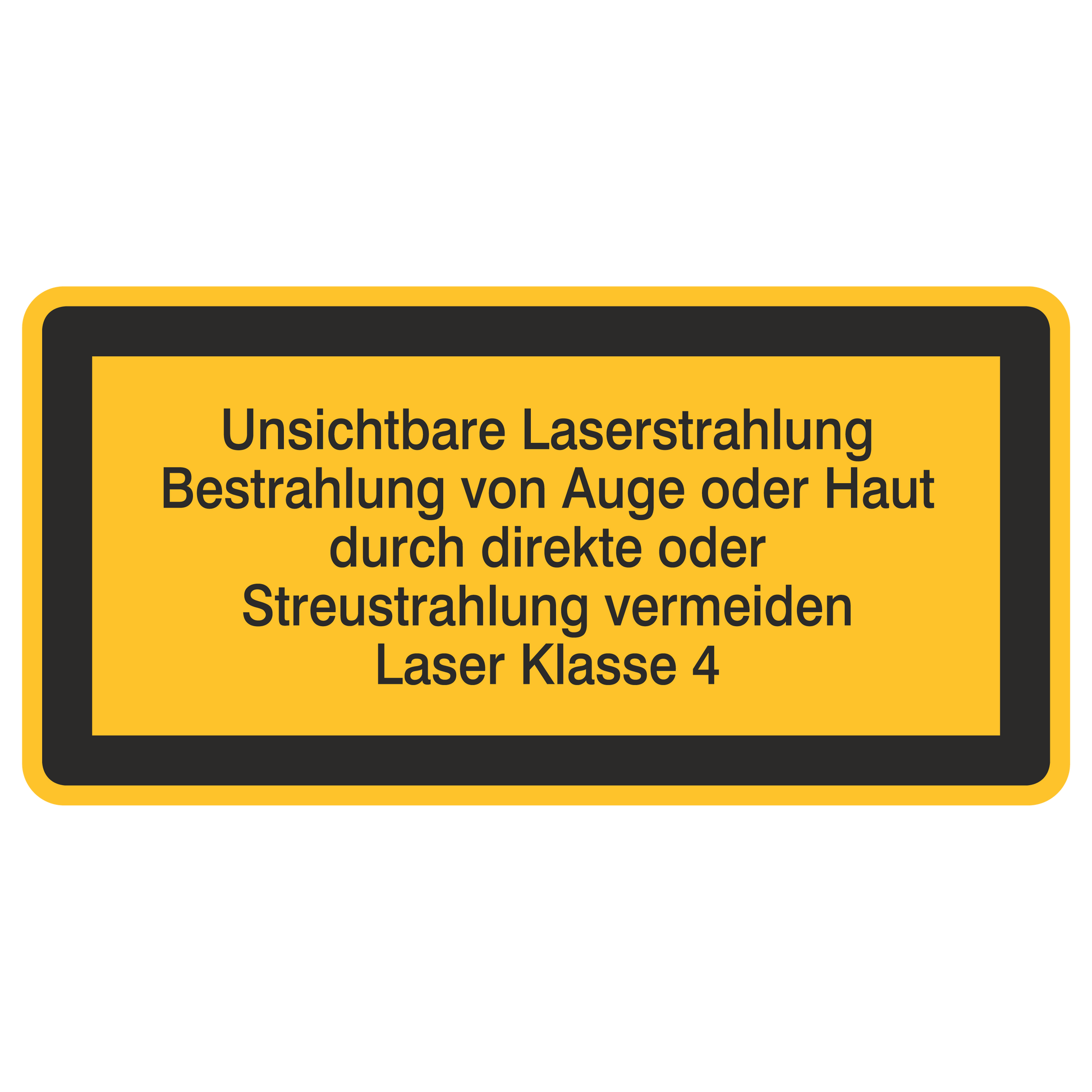 Laserwarnetikett / Unsichtbare Laserstrahlung Bestrahlung von Auge oder Haut durch direkte oder Streustrahlung vermeiden / Laser Klasse 4