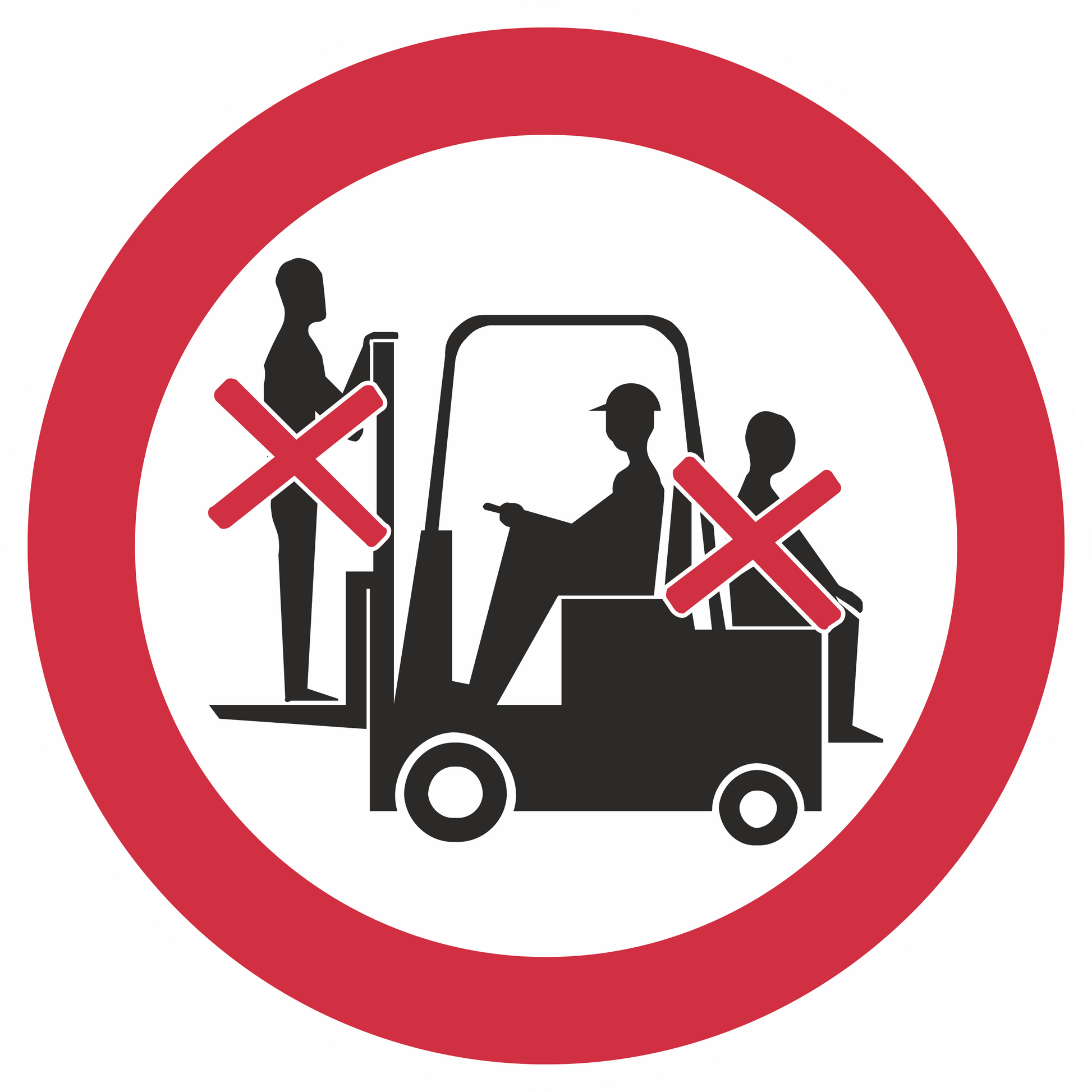 Verbotszeichen / Mitfahren auf dem Gabelstapler verboten