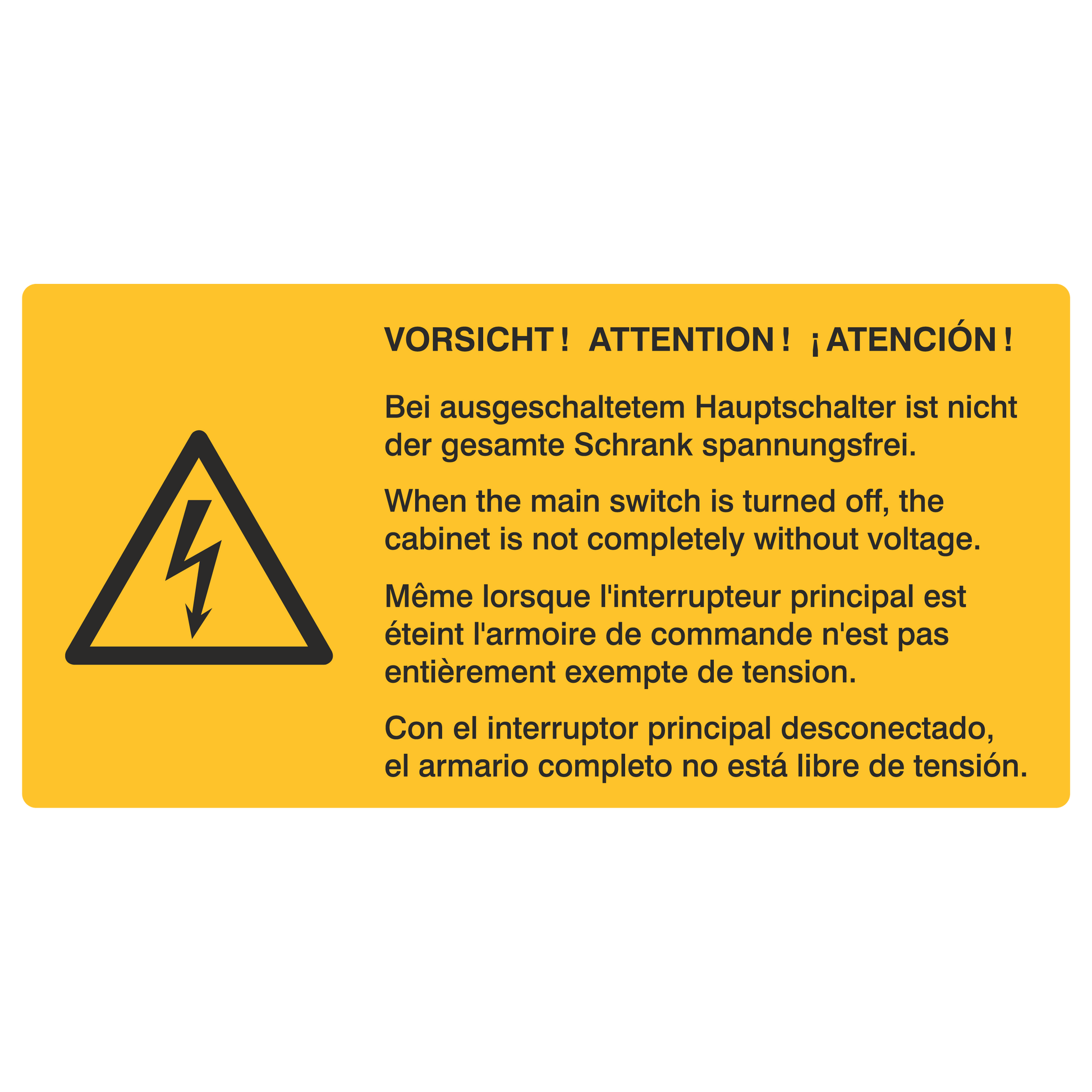 Bei ausgeschaltetem Hauptschalter ist nicht der gesamte Schrank spannungsfrei