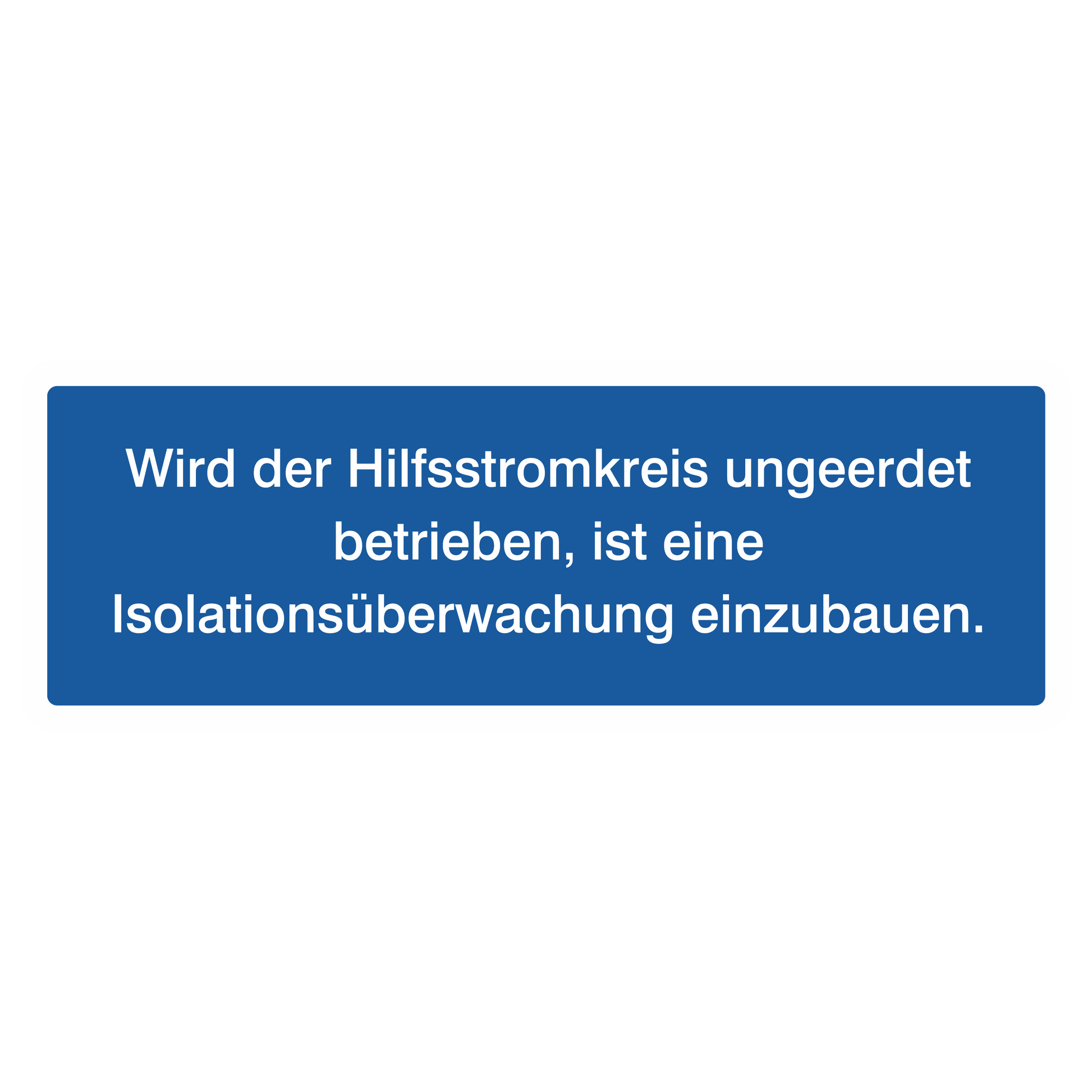 Wird der Hilfsstromkreis ungeerdet betrieben, ist eine Isolationsüberwachung einzubauen